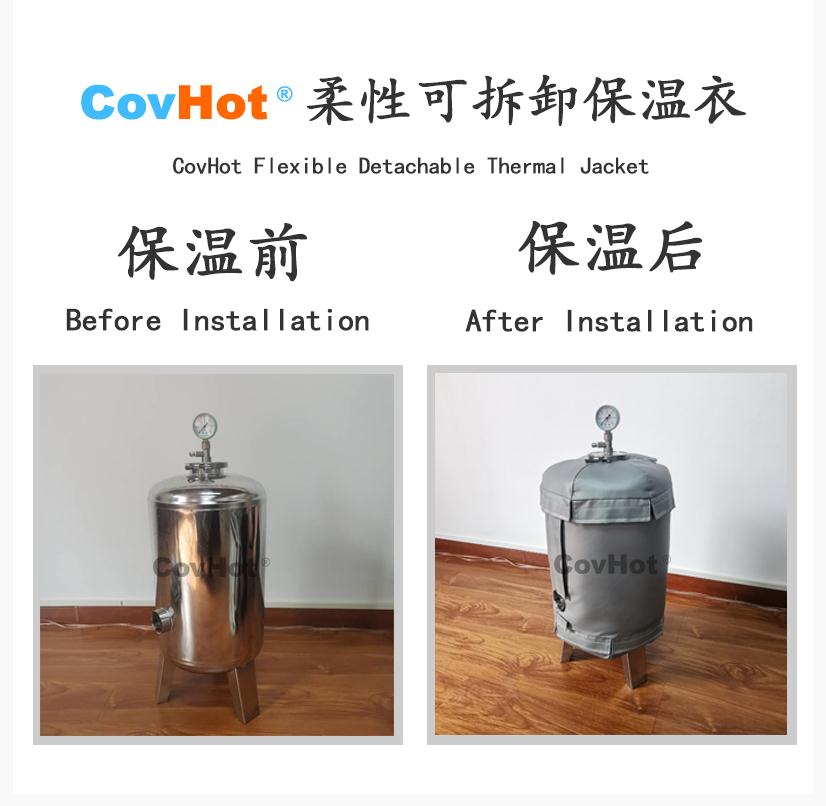 4.節能效果: 可拆卸保溫套能夠顯著的減少熱能損失,將熱能利用率最大化,減少能源消耗,為企業減少生產成本。