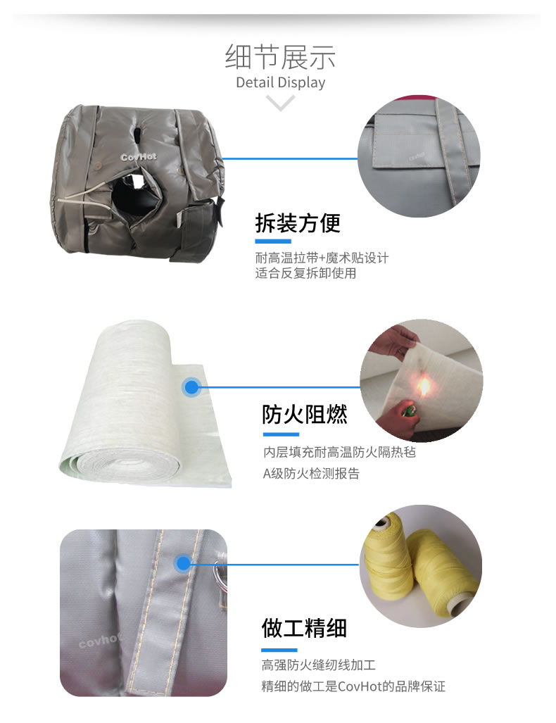 換熱機(jī)組保溫隔熱套采用耐高低溫性能優(yōu)良防火保溫材料;由內(nèi)層、隔熱層、防護(hù)層三層組成,根據(jù)設(shè)備的具體形狀設(shè)計(jì)縫制而成的。近些年越來(lái)越受到有設(shè)備保溫隔熱需求用戶的喜愛。