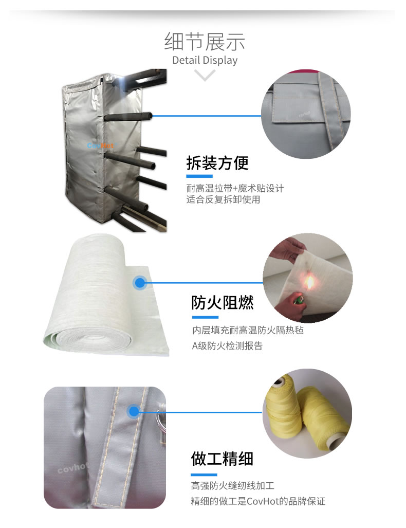 新型板換節(jié)能保溫套,方便拆卸安裝,降低檢修成本,新型板換節(jié)能保溫套使用耐高低溫、防火保溫材料制作而成,拆卸安裝方便簡單,保溫隔熱性能高。