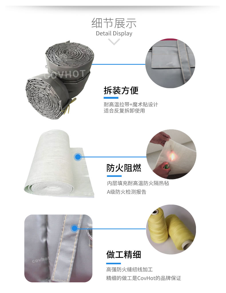 耐高溫保溫隔熱纏繞帶使用耐高、防火保溫材料制作而成,耐高溫保溫隔熱纏繞帶是在設備上進行纏繞以達到保溫目的。拆卸安裝方便簡單,使用靈活。